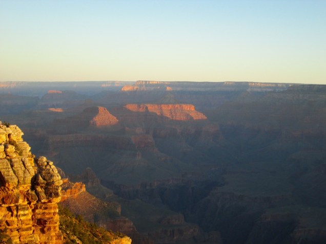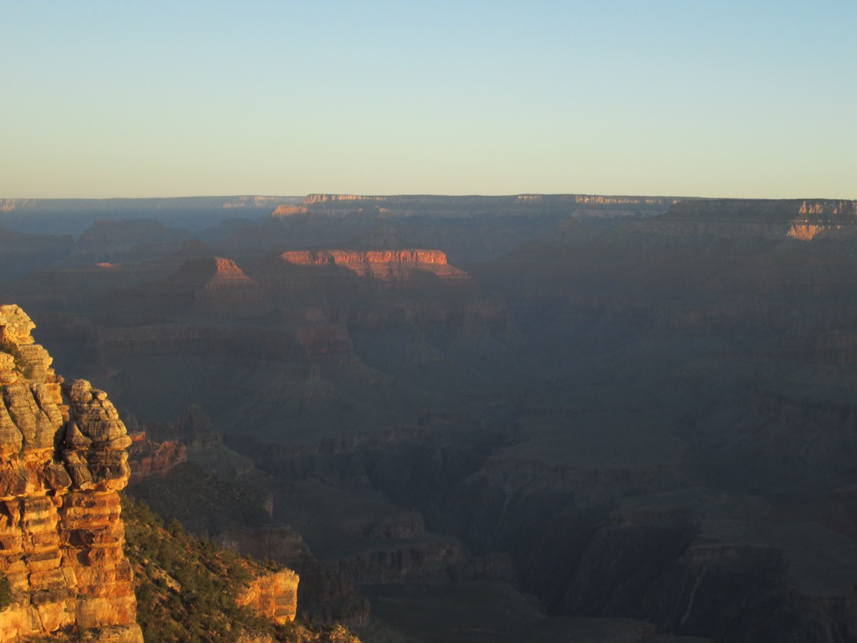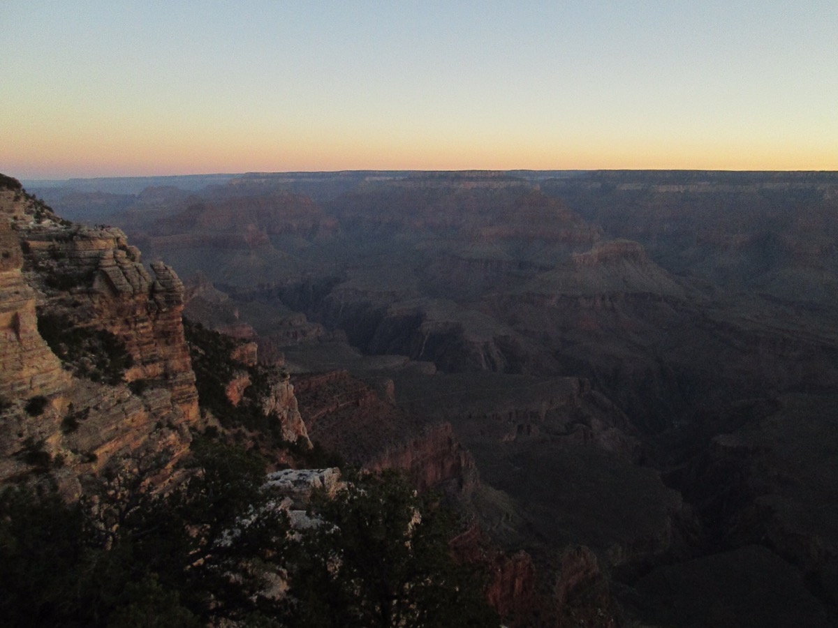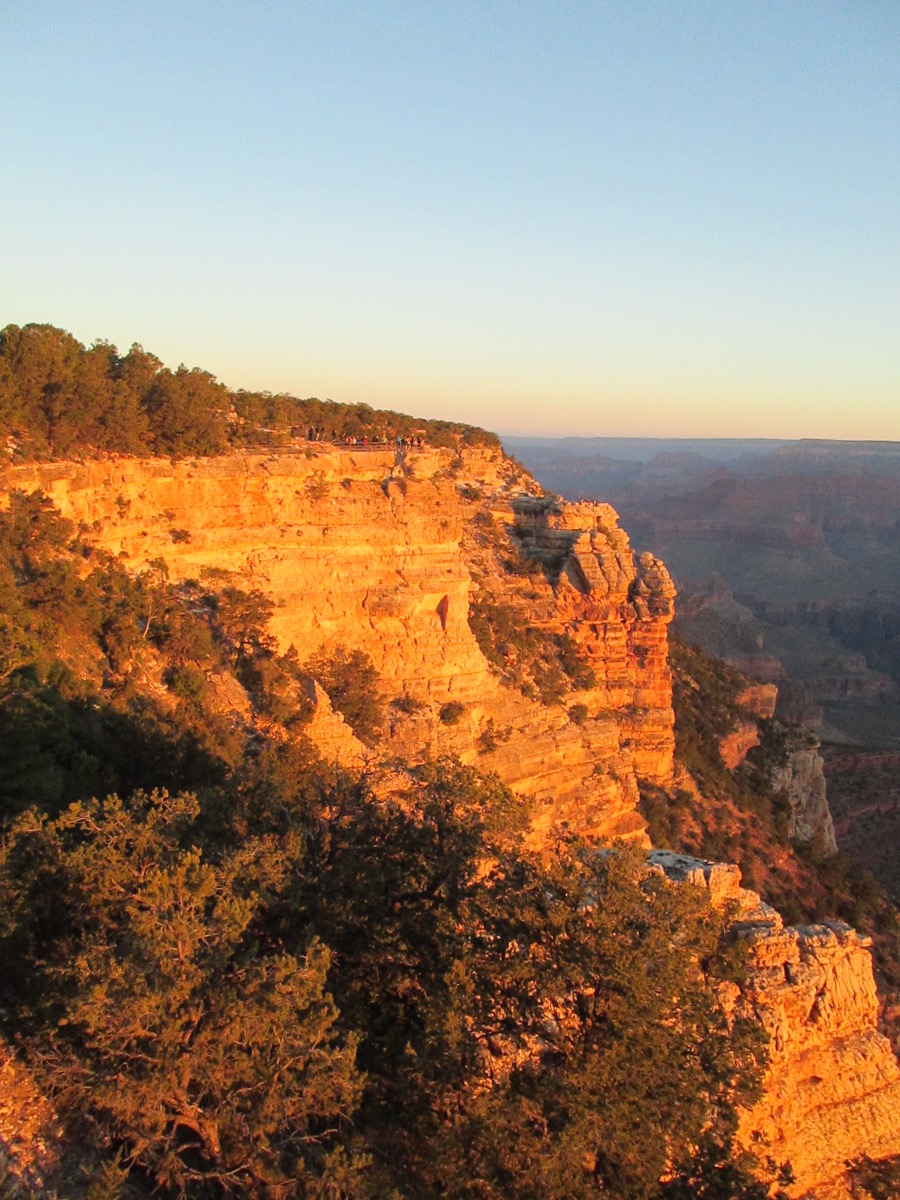 Sadly, we left the Grand Canyon this morning but not without seeing another sunrise, this time from the rim at Mather’s Point. We were up at 4:00 to catch a shuttle to see the sun come up just before 5:30. It was very cold, but just as beautiful as yesterday’s sun up. And a lot less work. 😉
