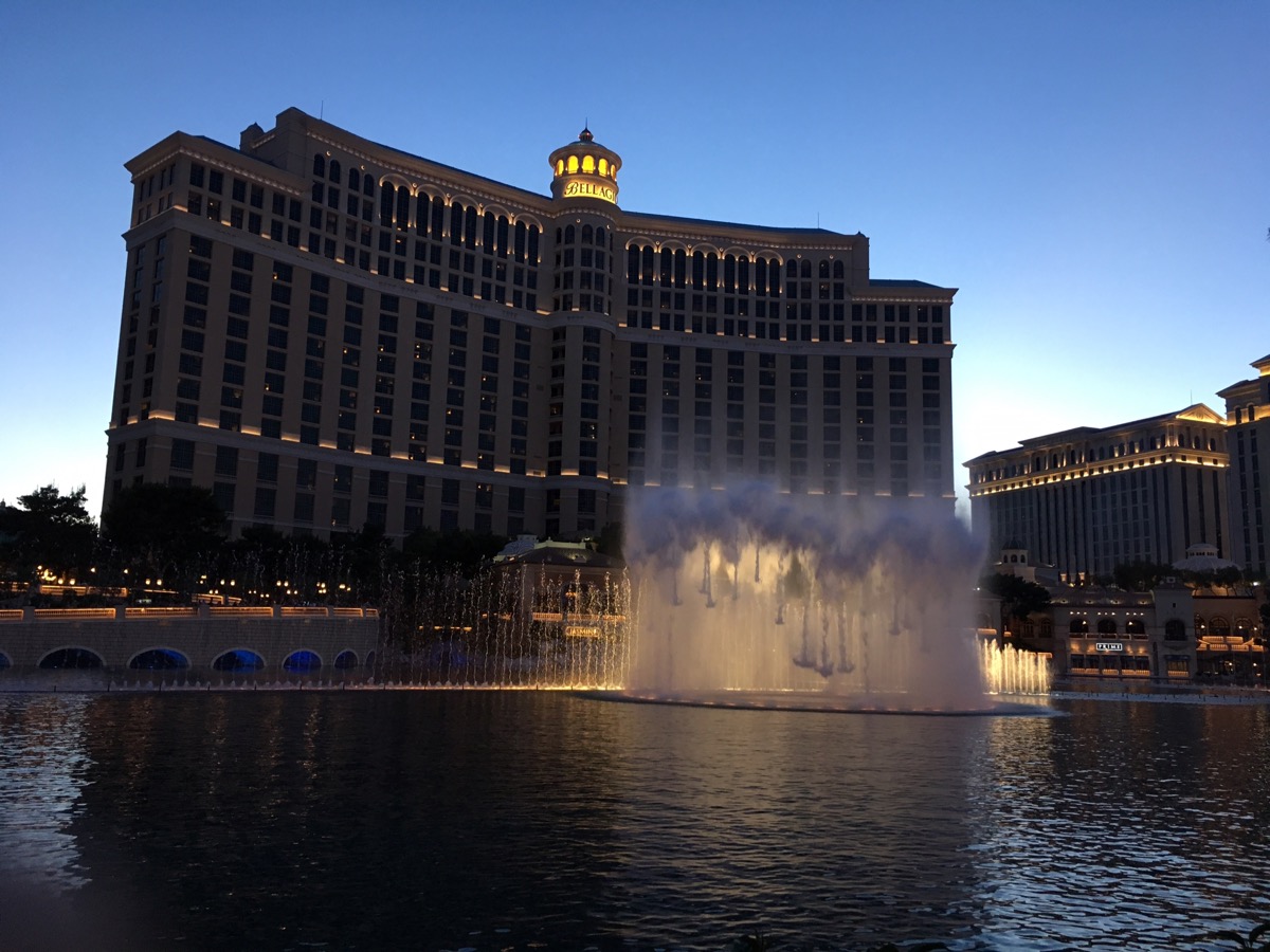 We got cleaned up and had supper at the House of Blues a bit before the evening rush. Felt like real retirees looking for the early bird special – no discount meals but it was Happy Hour. We call that a win. Then we went for a stroll up the Strip toward the Bellagio, looking forward to the fountains. They did not disappoint. Check out the pics Connie took. The reality is just like the final scene from Oceans Eleven. Thanks, Tim, for your help in planning.
