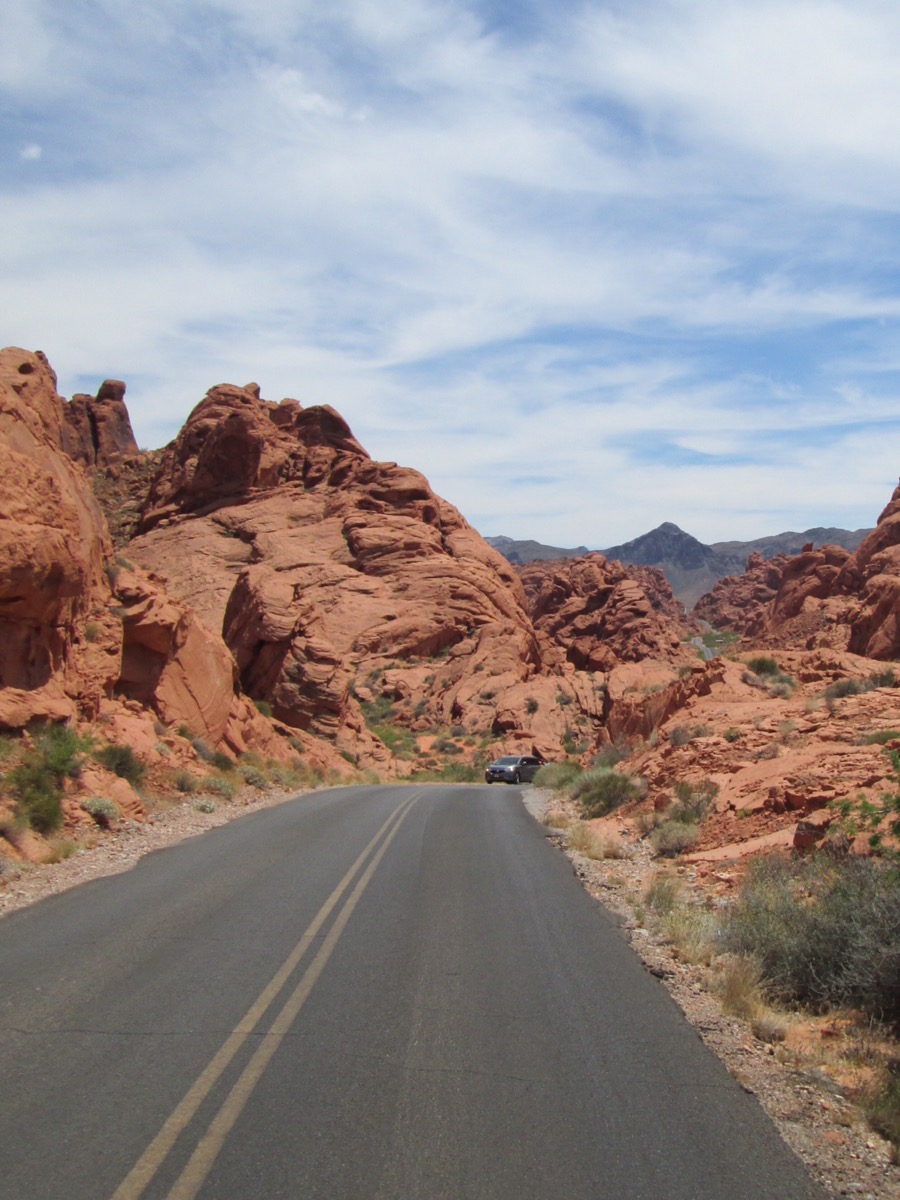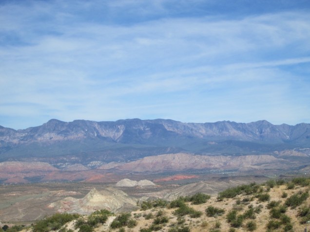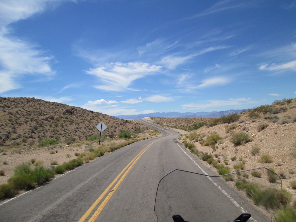 We headed for LV early in the afternoon and got a taste for the back roads here. We found the roads appear to lead straight away into the distance. It’s a bit deceiving, though. Our line of sight extended up to 10 miles, but the road managed to take unexpected dips through dry washes and through seemingly modest breaks in the terrain that didn’t appear until we were right on top of them. Wonderful to have long term goals, but it pays to pay attention to what’s right in front of you. (Moral for the day.)