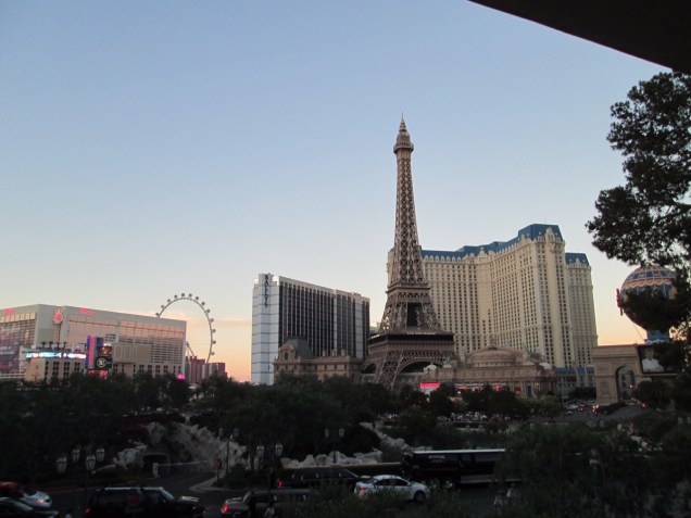 We’re staying at the Luxor at the base of the Strip at Tim’s suggestion. We’re in the main pyramid so our room’s ceiling slopes like the second floor of a cape cod. The view is nice, though I keep forgetting to duck.