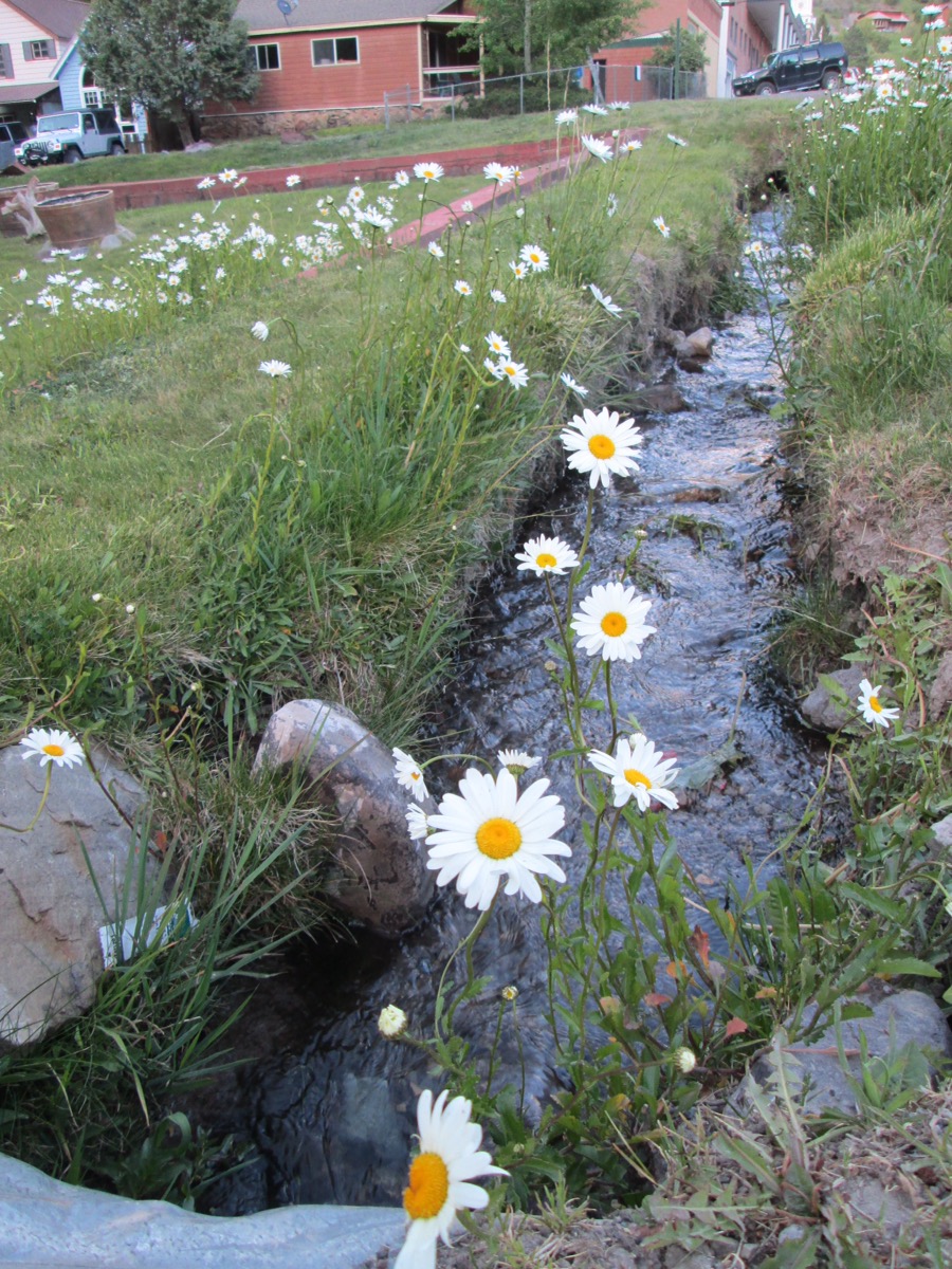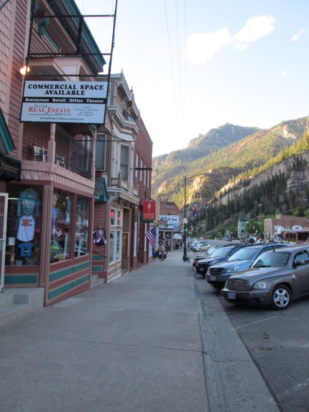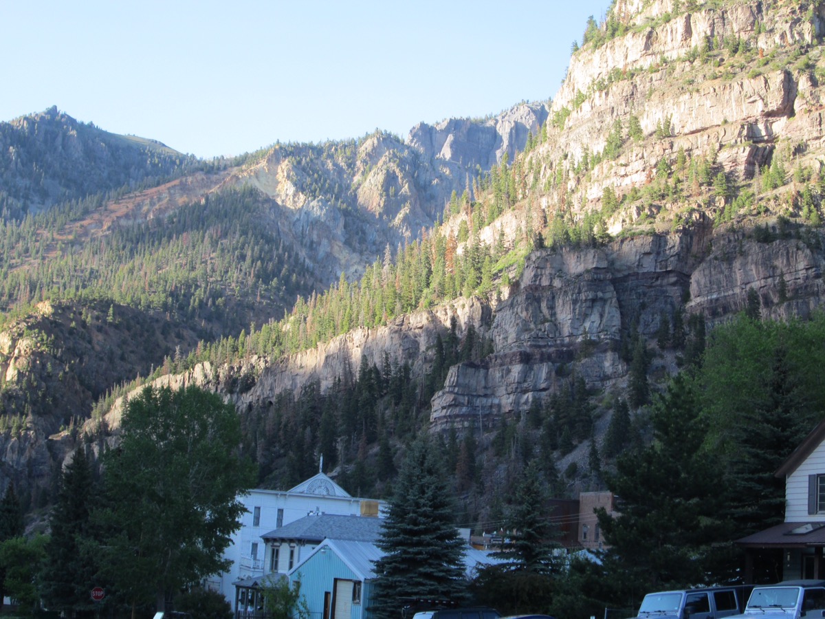 Then Ouray. A small town that is just stunning. Snow capped peaks, forested vales, and startling blue skies at 7,200 feet. The last time we saw a sight like this was in the Swiss Alps. And so laid back. We checked into this charming little motel called the Ouray Inn and proceeded to the public thermal baths. The water in the kiddie pool is 92 degrees, and the adult soak is 104 degrees. If you have an ache or pain, it is soaked away in short order. While looking at the towering peaks. While watching climbers ascend a rock face less than 1,000 feet away. And no worries about drowning: there are about 50 high school aged lifeguards close to hand to make sure we don’t drown in the 3-foot deep water. Even though some of us have too much built-in flotation to risk drowning. But I digress. Again.