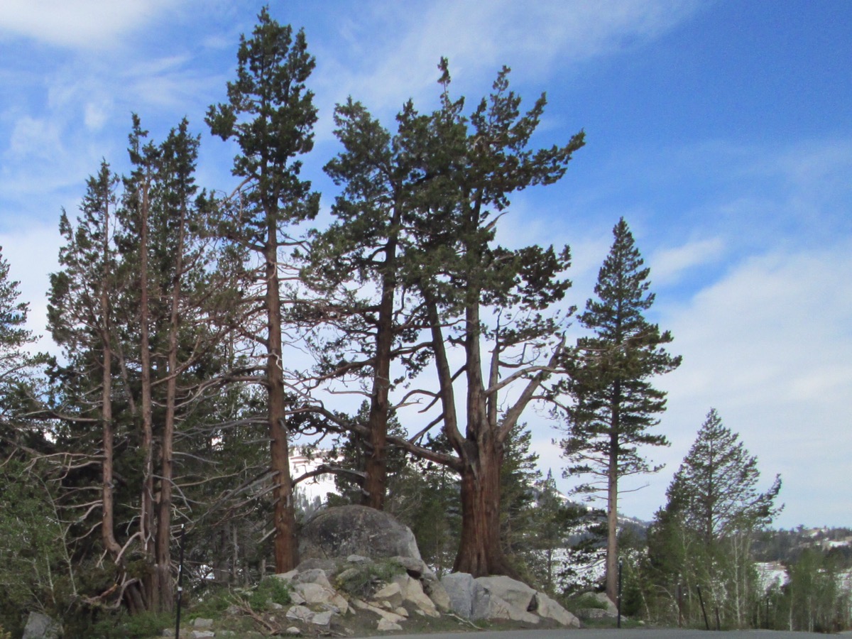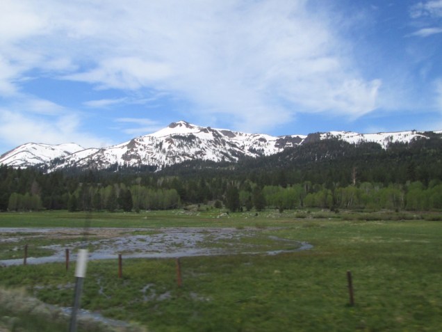 Just over the California state line, everything suddenly became green. Seriously. From semi-arid to lush in about ½ a mile. Aspens, ponderosa pines, and loads of sprouting bushes and grass. Gorgeous. We stopped for lunch a little below Kirkwood, CA and feasted on a breakfast burritos at the newly opened cafe, “The Chatterbox.” We met another biker, Todd, who was riding back home to Cali from Phoenix with his new bike – retired Police bike with “police” emblazoned all over. He cheerfully announced he gets a lot of attention when he rides by. Wonder why.