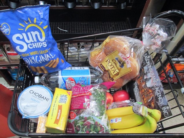 Groceries for the next two days.  (Alcohol not pictured)