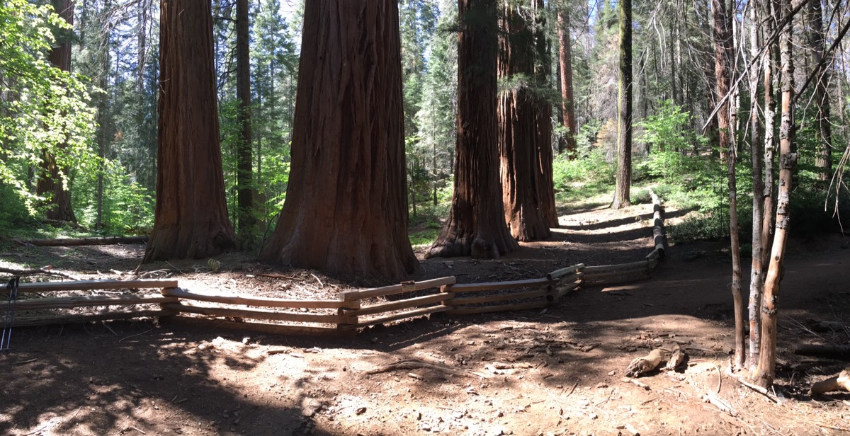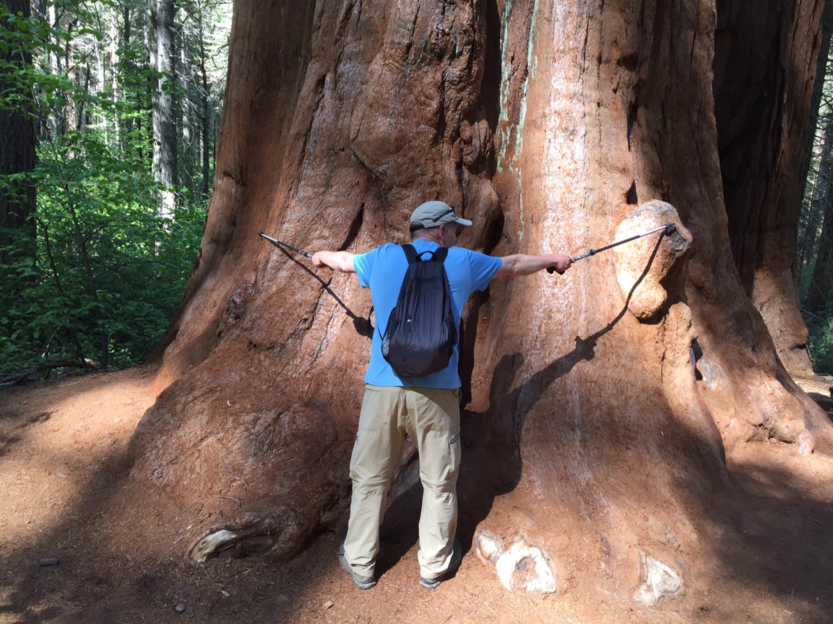 A short ride (30 minutes is short by California standards) brought is to the trailhead to the Merced Grove, the smallest of three sites where giant sequoias grow. This hike was a bit over 3 miles round trip along a steep trail, but at the far end 25 mammoth trees await your pleasure. Connie has pics that in some small way convey just how big they are. By rough estimation, one tree appeared to be about 300 feet tall. We tried to gauge its diameter and estimate its about 15 feet in across. That makes it about 45 or 46 feet in circumference. Giant and stately. And the quiet that filled the glade leaves one filled with both peace and awe. We met a wonderful couple, Len and Ann, who live nearby and come there often. When we remarked on this wonder, they expressed that they feel blessed to have this wonder in their backyard.