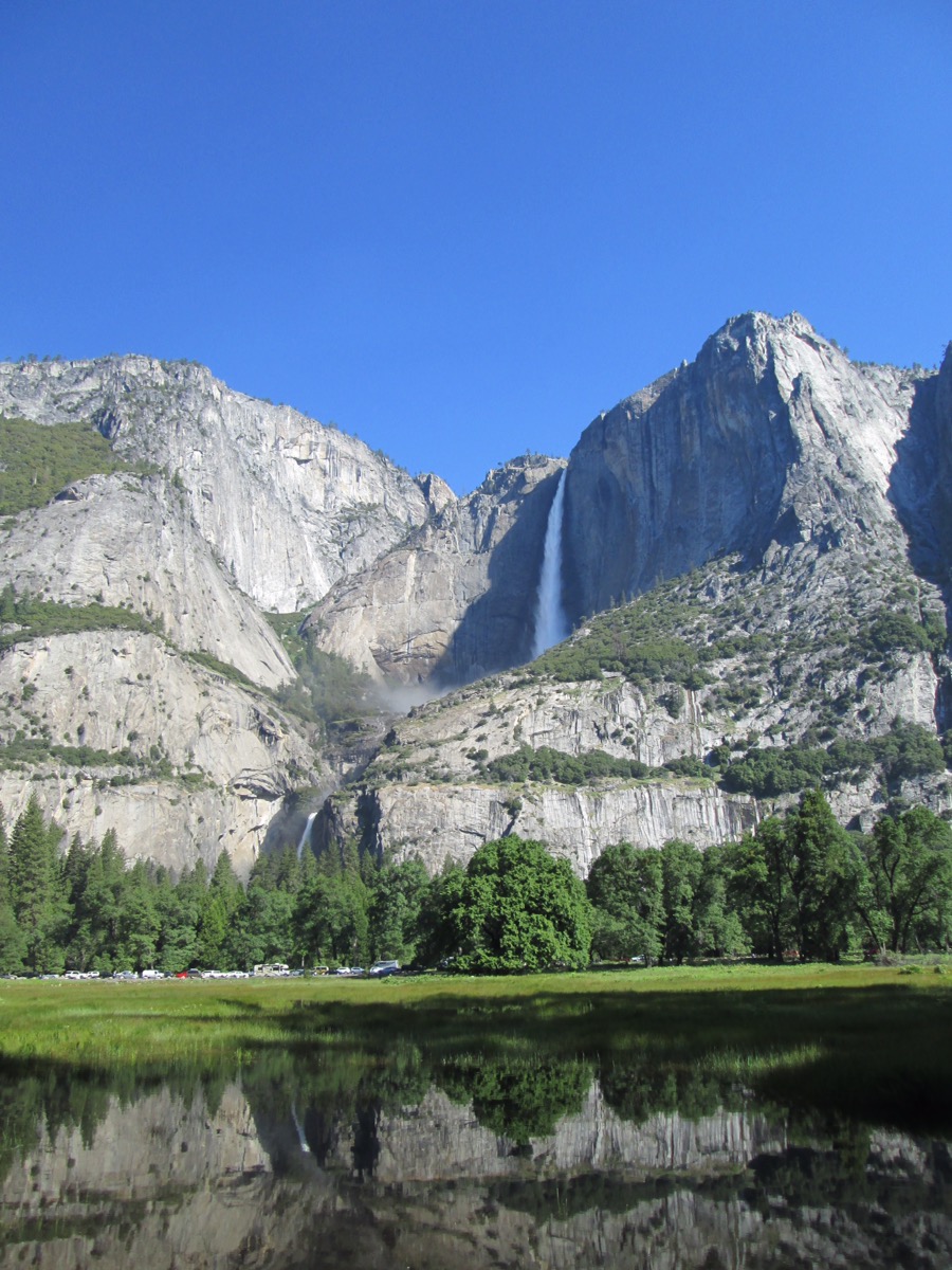 A beautiful day! We got out at 7:30 for the 45 minute drive to Yosemite Park. With various meandering for gas and sight seeing, we arrived a little before 9:00 and found a place to park at Sentinel Bridge. It wasn’t a snap because a LOT of other folks had the idea of coming early. The first sight that greeted us was the glorious Yosemite Falls, which cascades over 2,400 feet in two cataracts. Because the spring runoff from the snow pack is at its height, we were treated to a truly breathtaking sight. We couldn’t tear our eyes away, or take enough pictures, or think of anything else for a time. (Pics attached.)