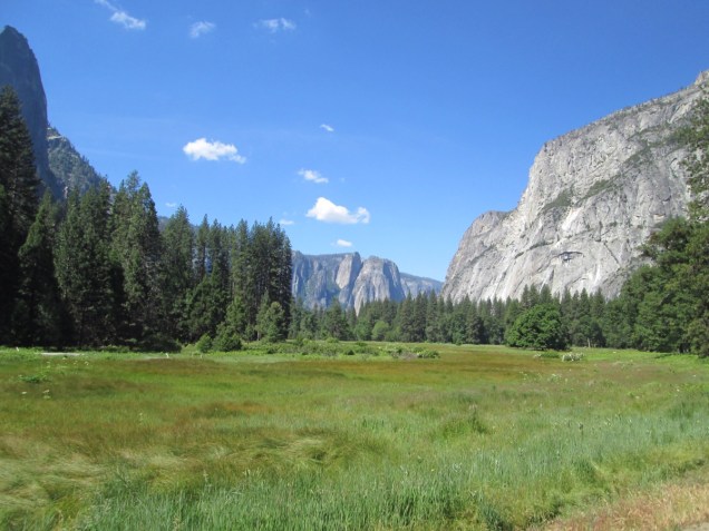 As we hiked back to our bike, we saw a number of falls that dropped out of the rock faces that towered around us. We got a good view of famous formations like El Capitan, the Half Dome, and the Chapel. If you ever have a chance, watch the PBS series, The National Parks, created by Ken Burns (who did series on the Civil War and others.) You’ll get a feeling for the genius behind the founding of the National Park System, and appreciate why many consider Yosemite as its crown jewel. We did.