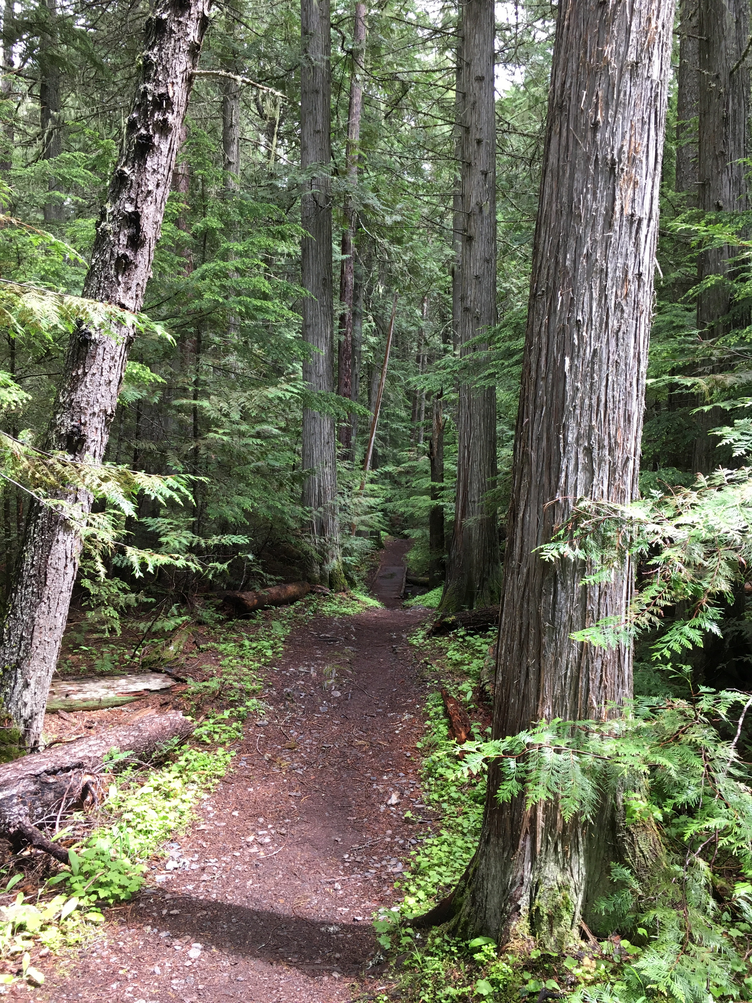 Connie, Judy and I made our triumphal return to Glacier today. The crowds were underwhelmed but our spirits were high. We set off down the John’s Lake trail at the north end of Lake McDonald, just off the Going-to-the-Sun Road. It’s an easy hike (they claim) of about 3 miles up the hill to, yes, John’s Lake. On the way, we met a couple of frantic parents looking for their kids who thought they had encountered a bear and ran off to get away. Turns out there was no bear in the area. We split up along separate trails and called their names, hoping to encourage them to come out. Before too long, their dad found them along the road where they presumably felt that help was available. Relieved parents did as most do when scared for their kids. There were hugs and tears and some scolding. The oldest, a daughter of 15 was embarrassed and probably wanted to crawl into the nearest black hole. Despite the absence of a real threat, she reacted in the best way she knew how to protect her two small siblings. We are impressed. After the adrenaline wore off her parents, we hope they will be, too.