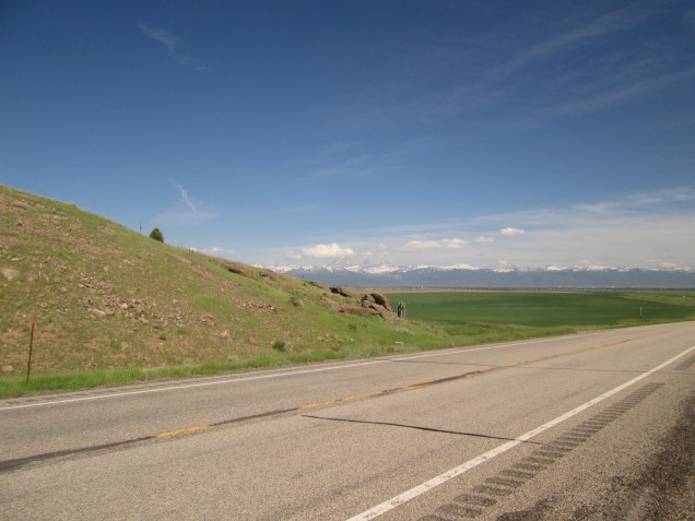 We headed out a bit after noon to continue toward the Tetons. As I said, the roads are good and the riding was a lot of fun until later in the afternoon when the winds picked up. We were not in any danger, but had to back off the speed because the buffeting was pretty uncomfortable. Folks in big, fast cars were passing us at 80+ mph, maybe chortling at the slowpokes on the fancy bike. We were completely unperturbed: the view of the approaching mountains was inspiring and worthy of a relaxed pace.