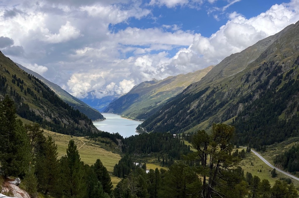 Courtesy Eyal, of one of our fellow ridersSome of the 29 switchbacksThe Kaunertal Glacier. A decade ago the peaks and the darker gray stone was all covered by the glacier. It’s really quite sad. A view of the reservoir from Kaunertal Glacier