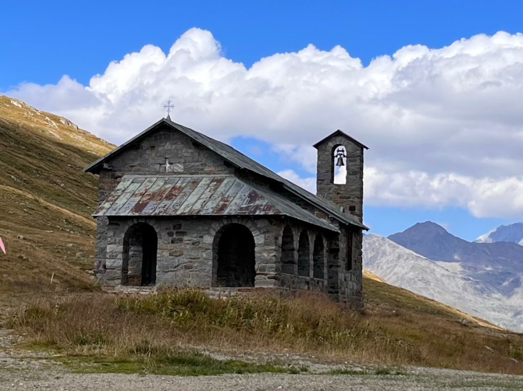 When we made it to the top a little dazed and breathless, our fabulous tour leader, Michael, brought us to a small stand that served fabulous brats on homemade Italian bread. We felt we were eating like conquering champions. Well sort of. We were exhilarated and a bit wrung out actually, and needed a chance to refuel and reenergize. As a note: Ever since I first saw pictures of the pass some years ago, it’s been one of my must do’s. Connie and I both felt the thrill and she got some terrific shots which she shared with our fellow riders on the Edelweiss tour. Everyone is glad because most of us were otherwise much too busy to even think about photos.