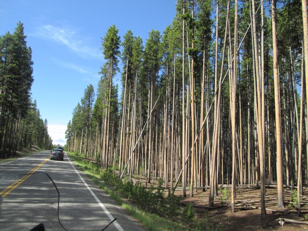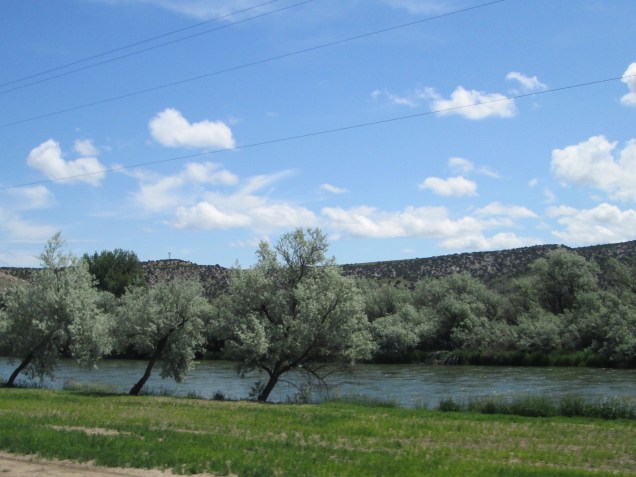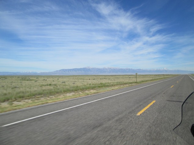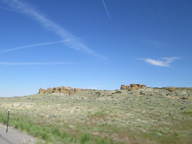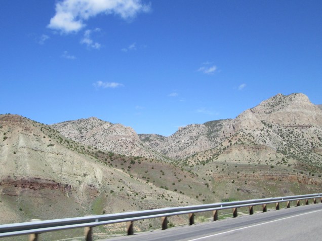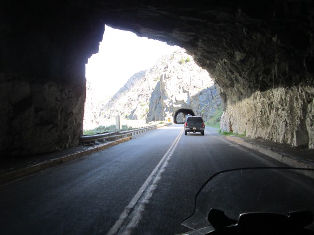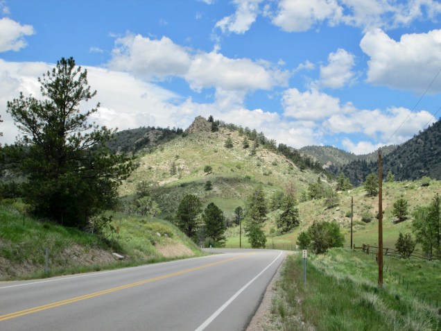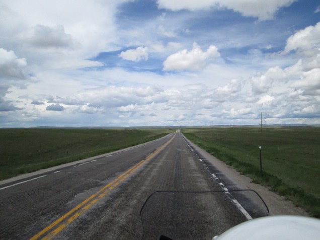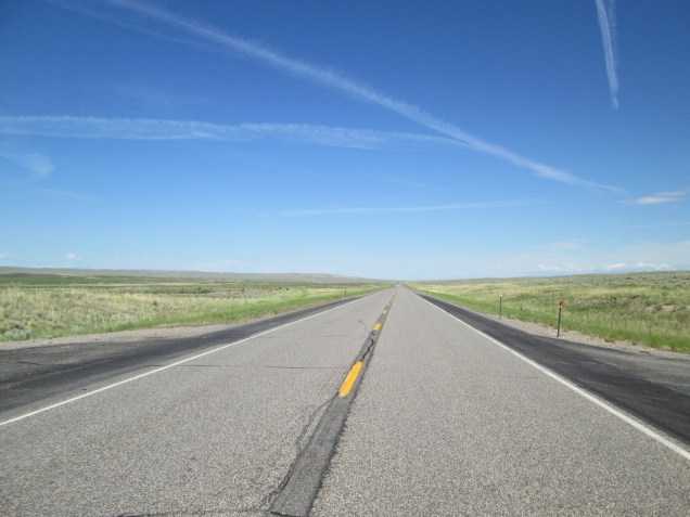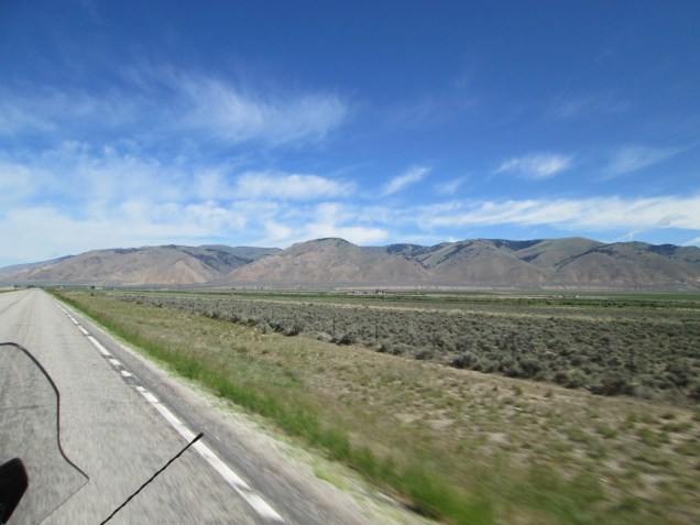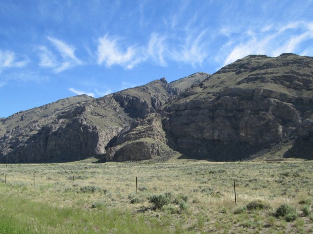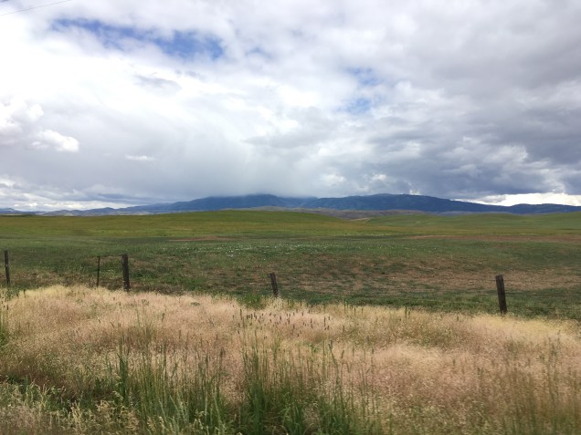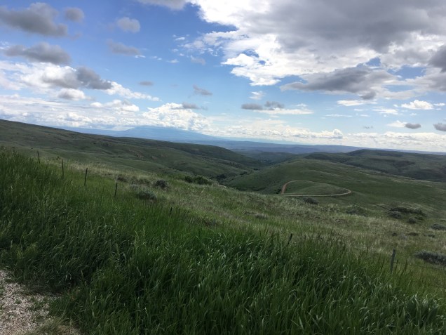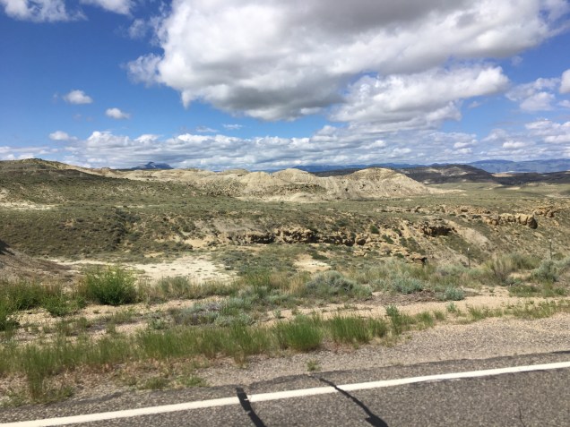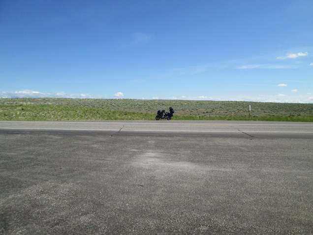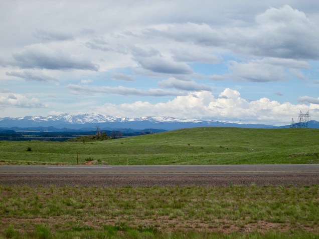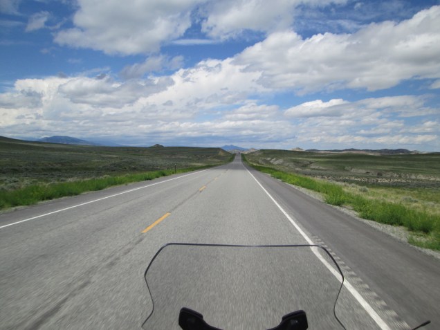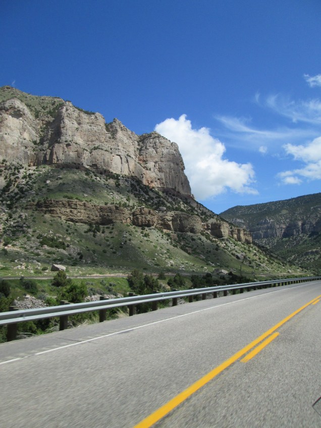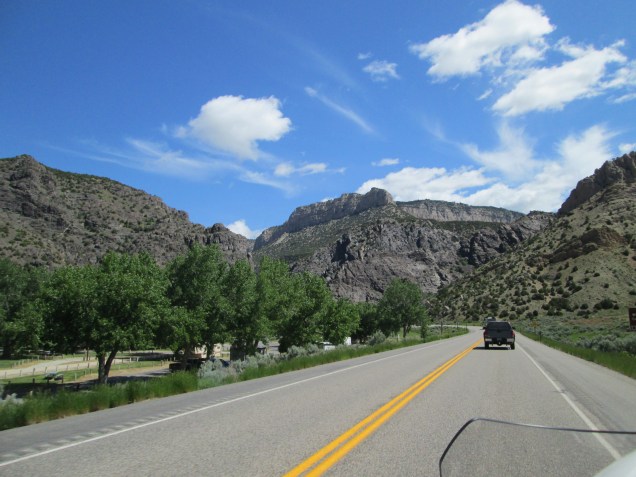We left Powell, WY at a leisurely pace on the 16th, stopping for breakfast at the Skyline Diner on the main drag. We were plenty different from the locals who were there for Sunday breakfast: our riding gear stood out against the cowboy hats, boots, jeans and western shirts. We looked at the family seated near the door, they looked at us and someone politely said “Good morning!”. We bade them “good morning” in return and all was okay so we took our seats though we remained rather conspicuous. 😀 We had a wonderful breakfast at a reasonable price and were able to listen in on some of the conversations around us. Predictably for a farming community, grain and feed prices, exports, weather and machinery figured prominently, plus a few plans for Fathers Day. It was a great start to the day.