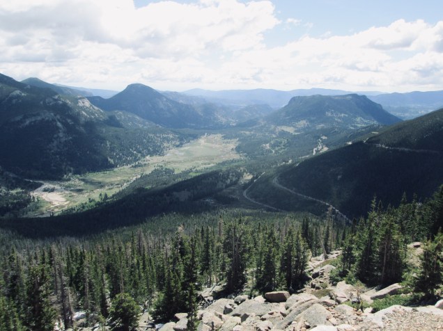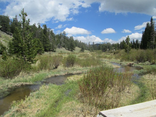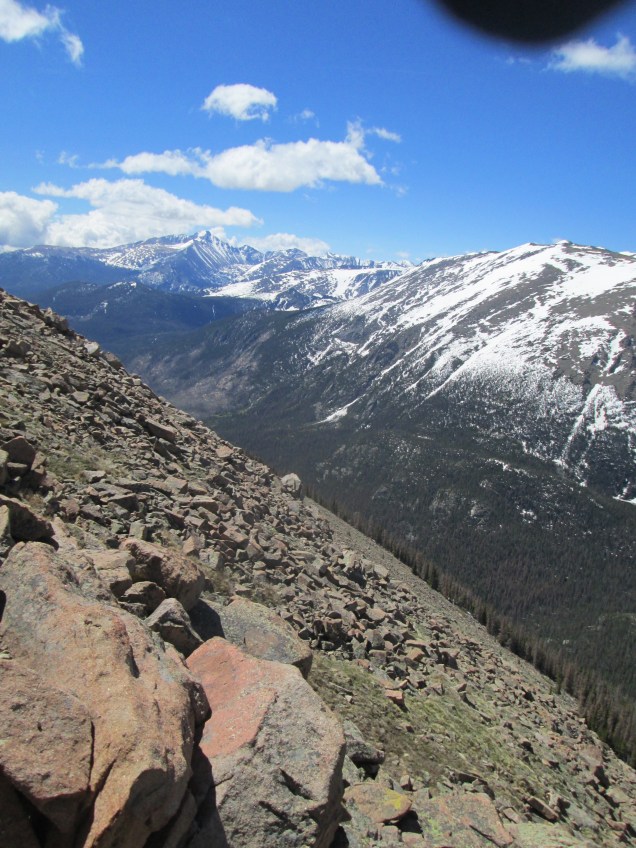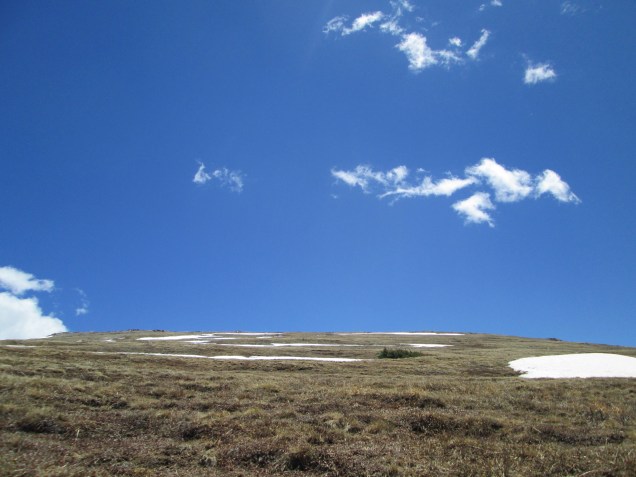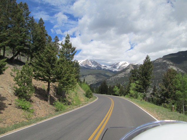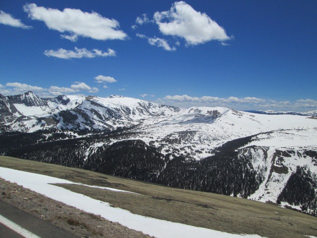 Naturally the sun came out shortly after we reached the top at 11,000 feet. There’s a ski area up there that is still open for business. (Did I mention there are still snow banks taller than our heads along the road?) Snow plowing is serious business out here.
