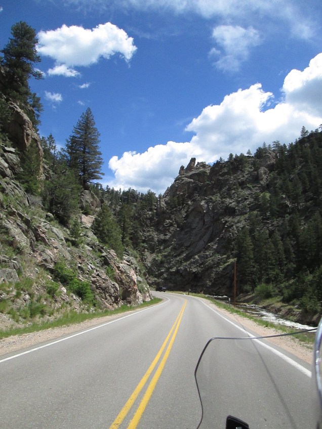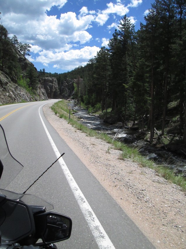 We left Powell heading north toward Red Lodge, MT and the start of the Beartooth Pass Highway (US 212). It was another beautiful, fun ride as we started the climb toward the Beartooth. There was a lot of ranch land, some unfenced, open range. Herds are discouraged from wandering too far along the roadways by “cattle guards”, strips of open steel grid that are painful to cows’ hooves. Though effective, we’re told, we still took our time and kept our eyes peeled; cows are a lot bigger than us.