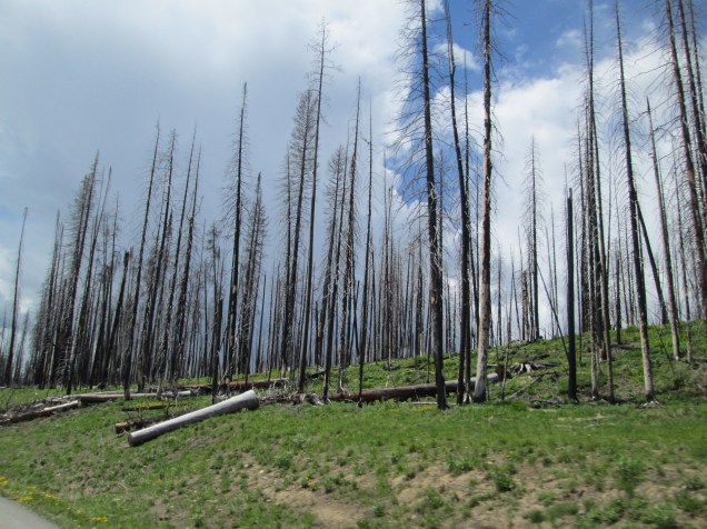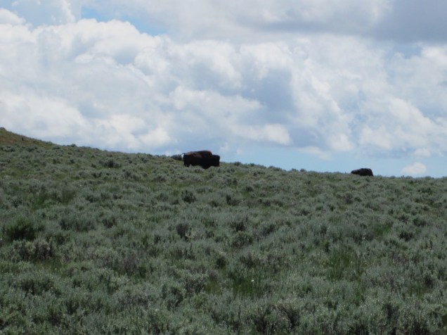 Monday morning we packed up and said a reluctant good-bye to Chad and Cooke City. Did I mention it’s set about by mountain peaks everywhere you look? Our route took us quickly through Silver Gate to the northeast entrance to Yellowstone Nat’l Park. The park is known for its robust geothermal activity and resultant geysers (like Old Faithful), hot springs and pools. Because we toured the park on our last trip, we made stops on our way to the southwest corner of the park and Grand Teton Nat’l Park.