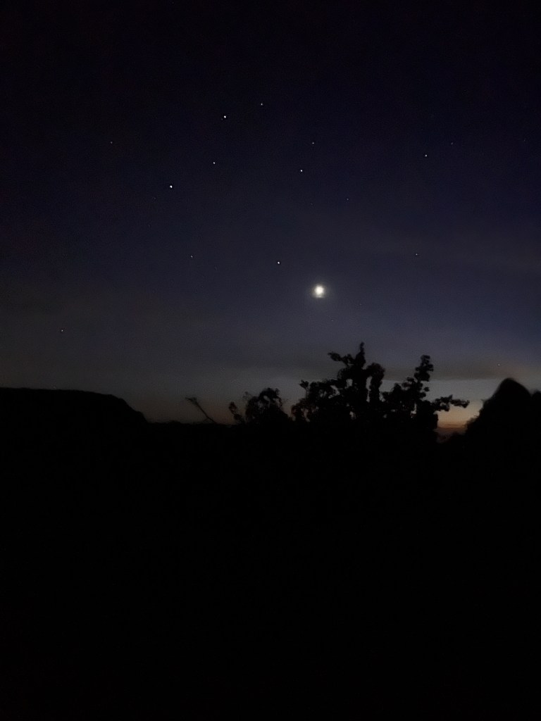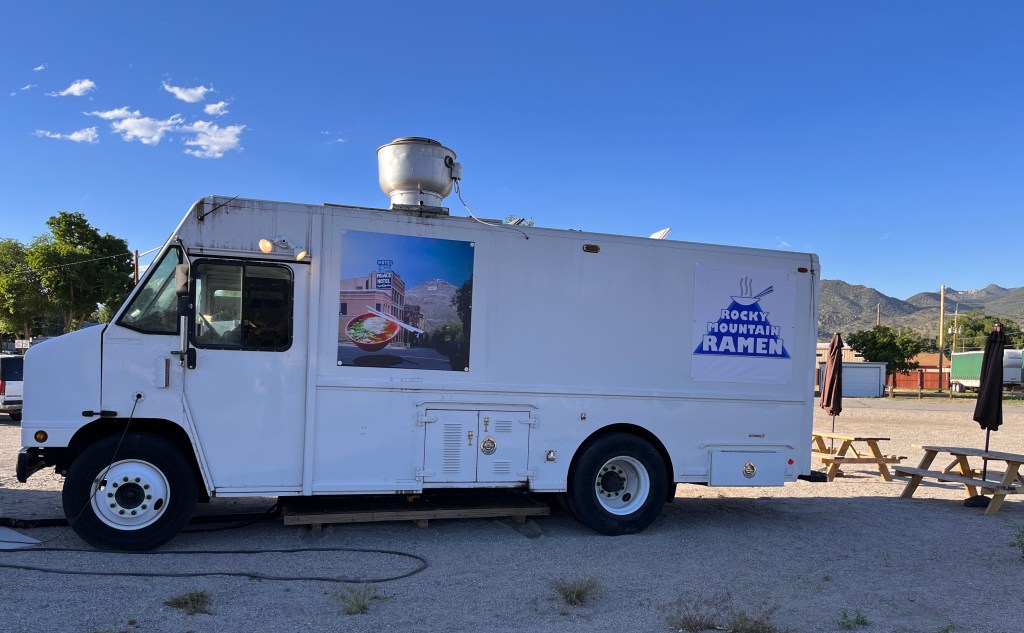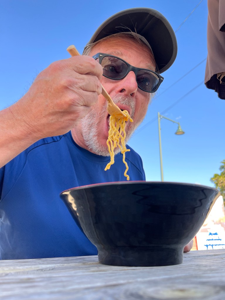 For supper, we walked about a mile to Rocky Mountain Ramen for some noodles and rice. Turns out it’s a food truck haunted by a wonderful cook who prepared a spicy and really tasty feast. We were glad we had to walk (waddle?) home.