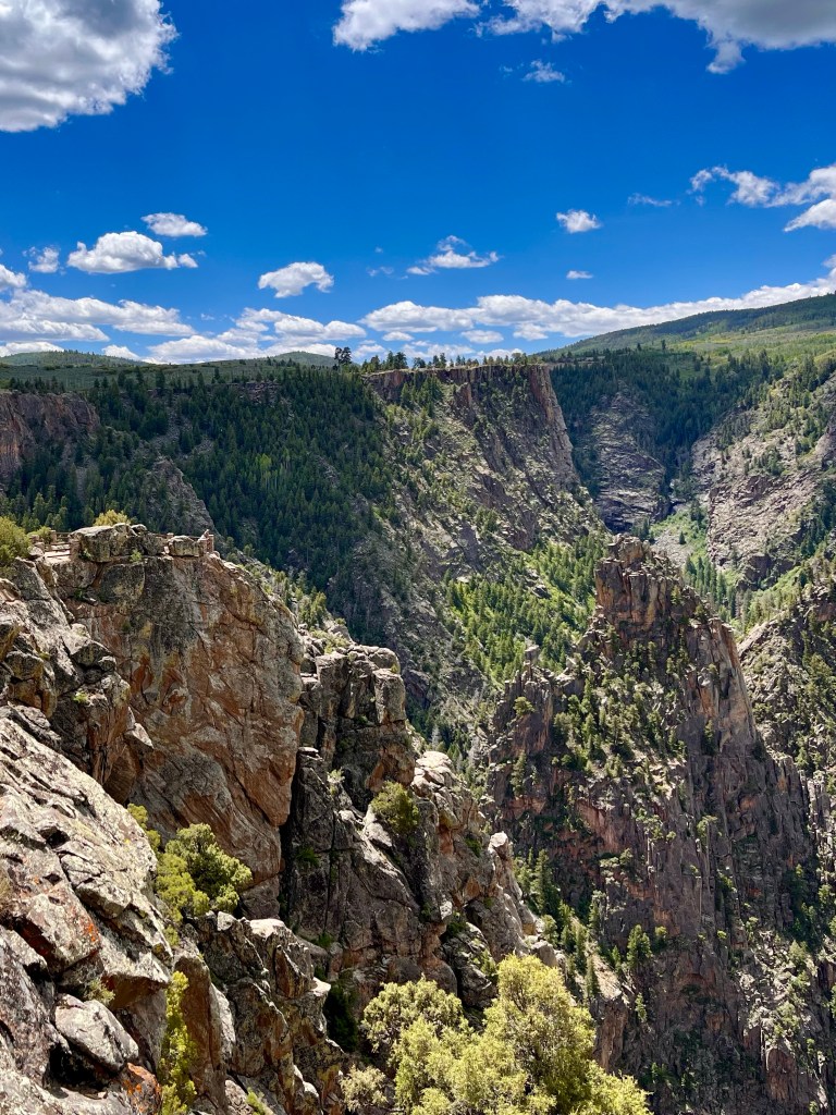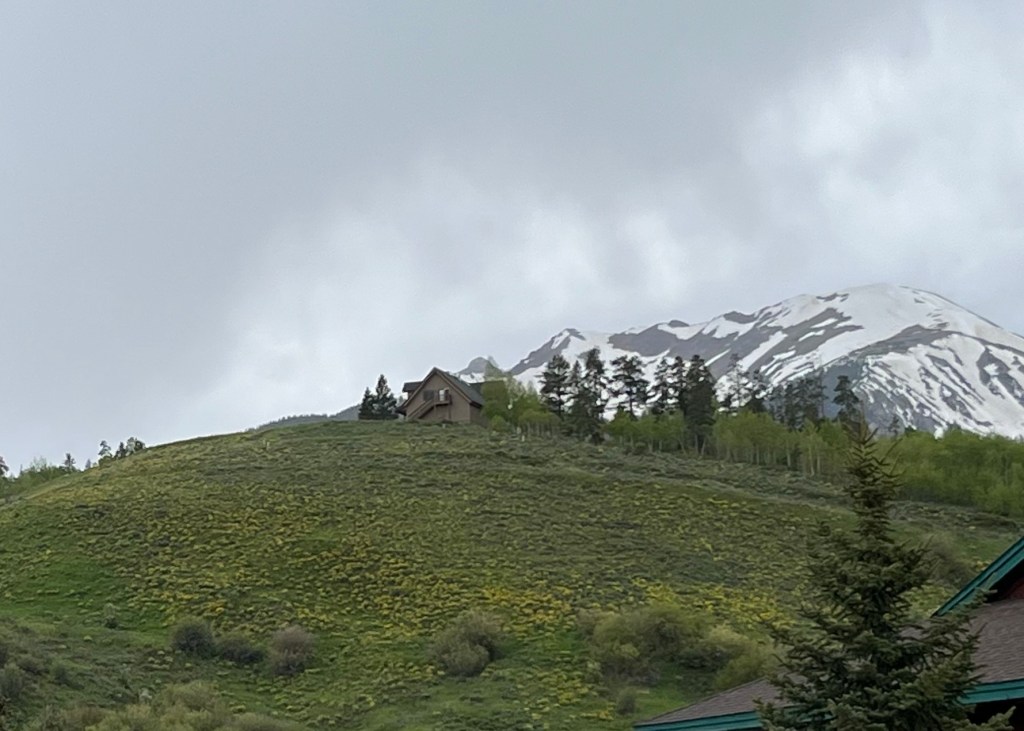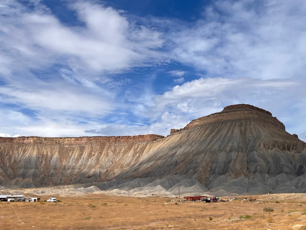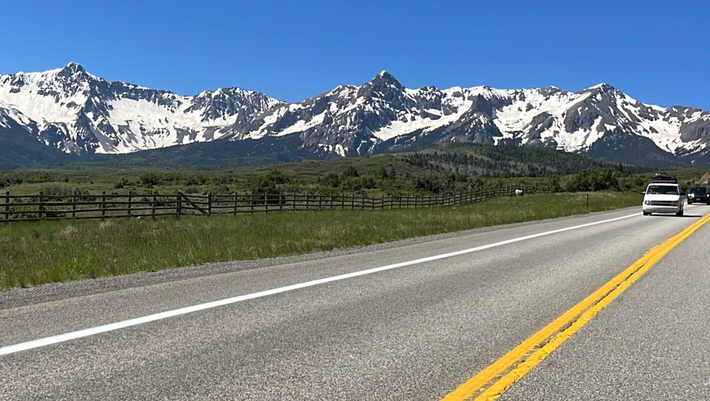 Our route continued through Lake City, Creede and then South Fork where we met an old friend of mine for lunch. His name is Bruce Anderson, married for 40 years to Terri, father and grandfather, and a fellow graduate of Burnt Hills-Ballston Lake HS. He’s retired after a rich and varied career path that included serving as a Park Ranger for the Nat’l Park Service, and with the Bureau of Land Management. He and Terri built their dream house about an hour from Durango in a spot that is deep in nature, quiet and beautiful. Connie and I were tickled that he drove more than an hour to meet us for lunch. (Terri couldn’t make it, unfortunately.) He gave us a lot of insights into this region of Colorado and changes that have happened in recent years. He told us about the naming of Slumgullion Pass. We had a great time with him.