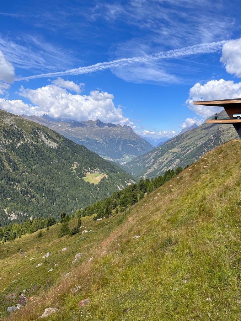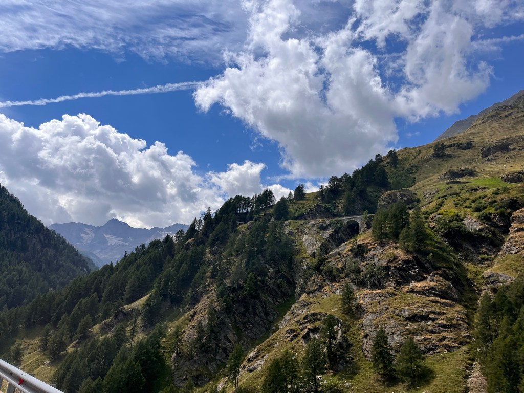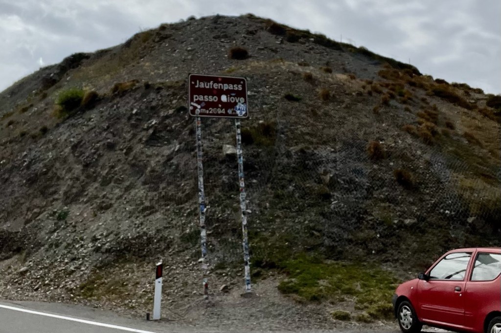 By this time, the Dolomites were behind us and were again in the South Tyrol mountains. We continued our ride to the Passo di Monte Giovo (Jaufenpass). The 31 km long Jaufenpass is a very smooth ride and offers magnificent views of the South Tyrolean mountains. The pass summit at 2,094 meters is crowned by a tiny wooden hut called “Edelweisshütte”. The small parking lot in front was crowded with motorcycles. It was cold and windy with the threat of rain. We were grateful for some warmth, all ate a good lunch and rested a bit. Connie and I had a goulash soup that was hot and spicy and good.